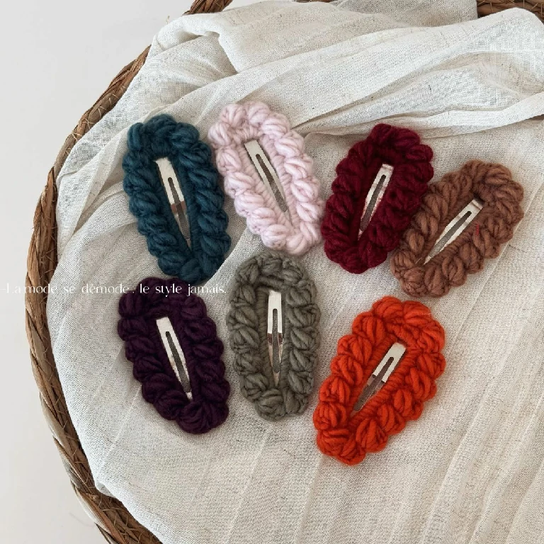 Dopamine Crochet Snap Clips – Handmade Colorful Hair Clips for Kids & Girls