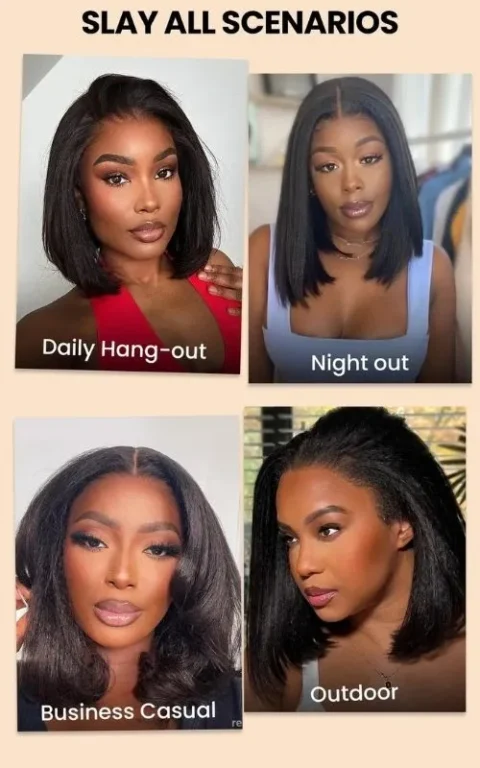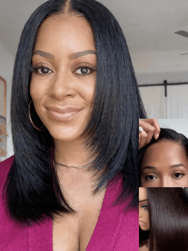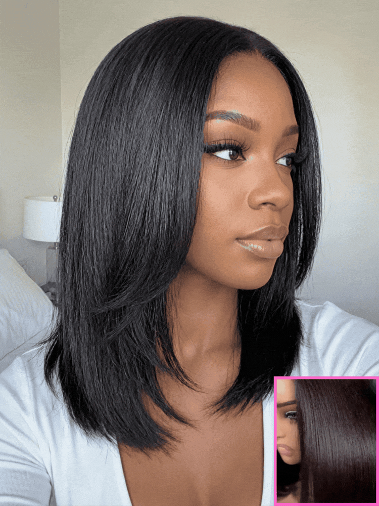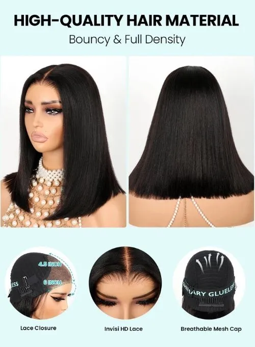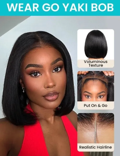 Yaki Straight Wear Go Bob Wig Pre Cut Lace Glueless Natural Human Hair